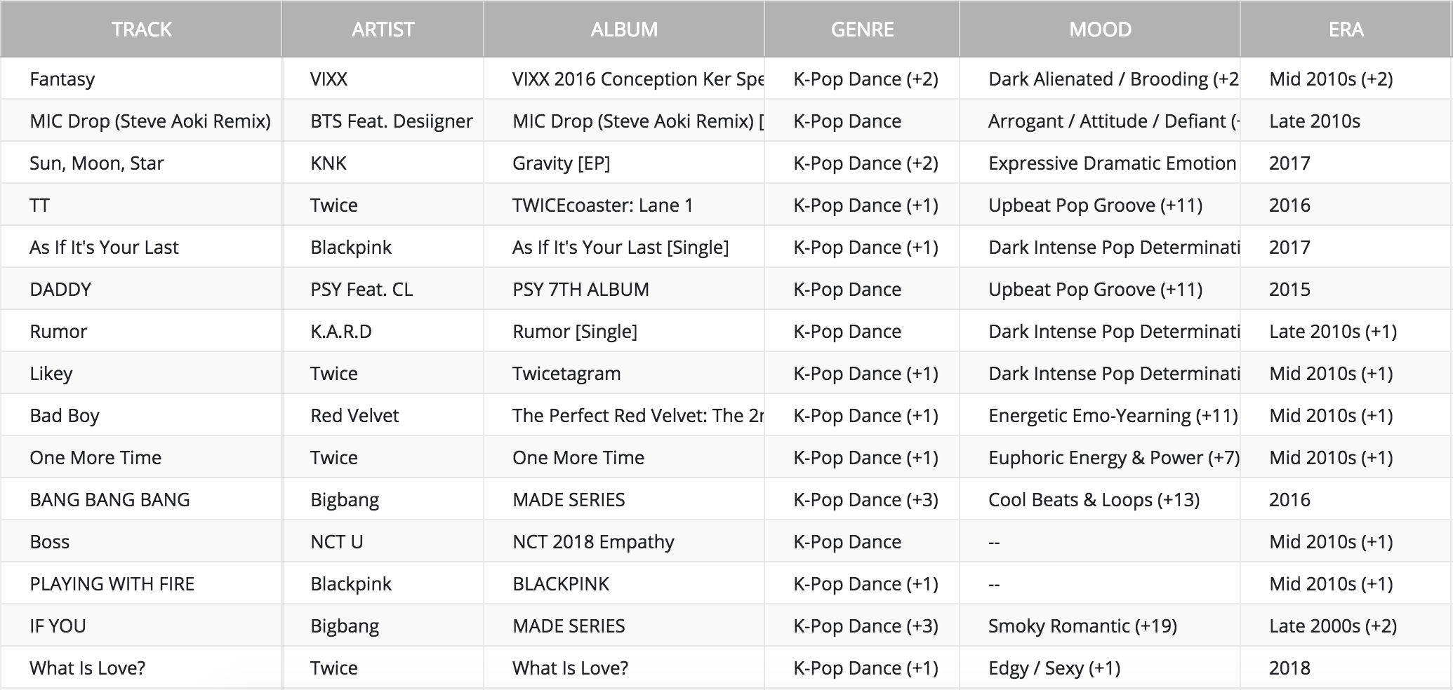 generating a playlist with genre = K-Pop dance will return recordings across different eras, artists, moods etc. Leveraging popularity scores allow end users to hear the most popular songs from the group first allowing them to have a better music discovery experience.