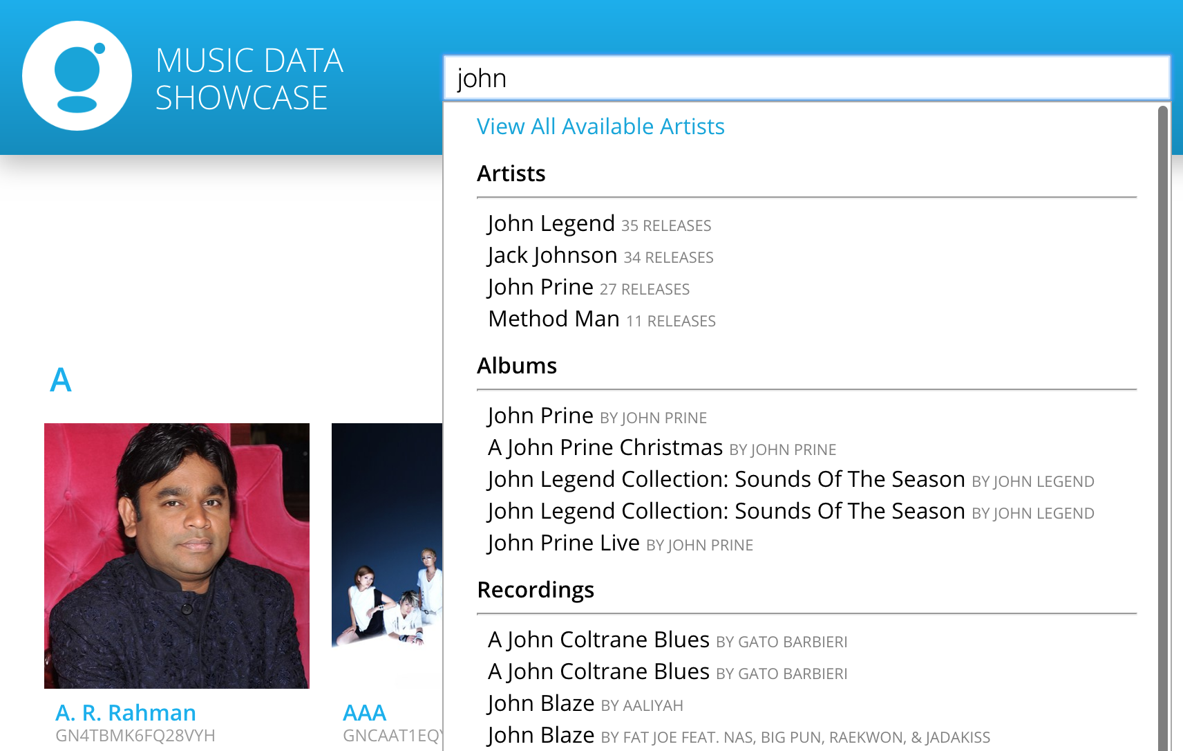 with multiple artists named "John", popularity scores can be used to ensure the return of their search would sort artists and recordings in the order of popularity so end users can more easily locate their desired result.