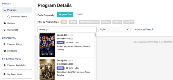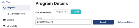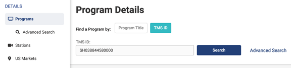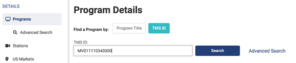 - Alternatively, search by Gracenote TMS ID, the de facto industry standard for Video identification.