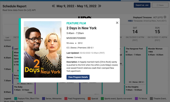 Click on any program in the schedule to preview details then click on View Program Details for full detail.