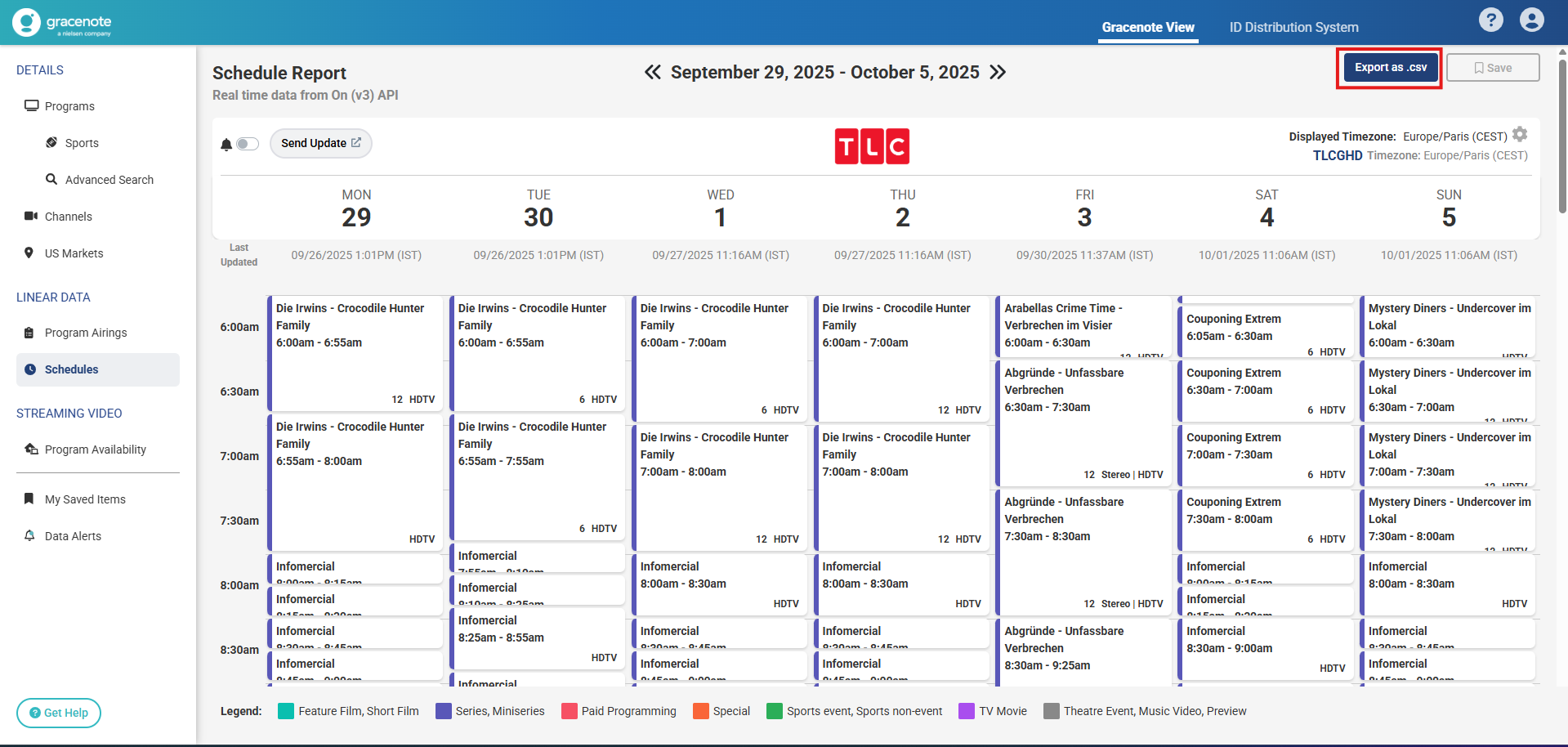 Click on the Export as .csv button to download the selected schedule(s) with TMS IDs.