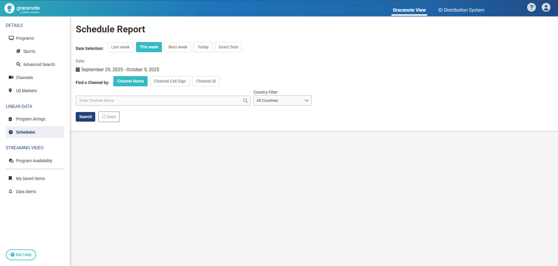 Generate your desired Schedule Report by selecting a channel and date range.