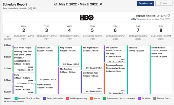 You can easily export all Content Rights data along with your standard Schedule Report, allowing you to incorporate this metadata into your external processes and reporting.