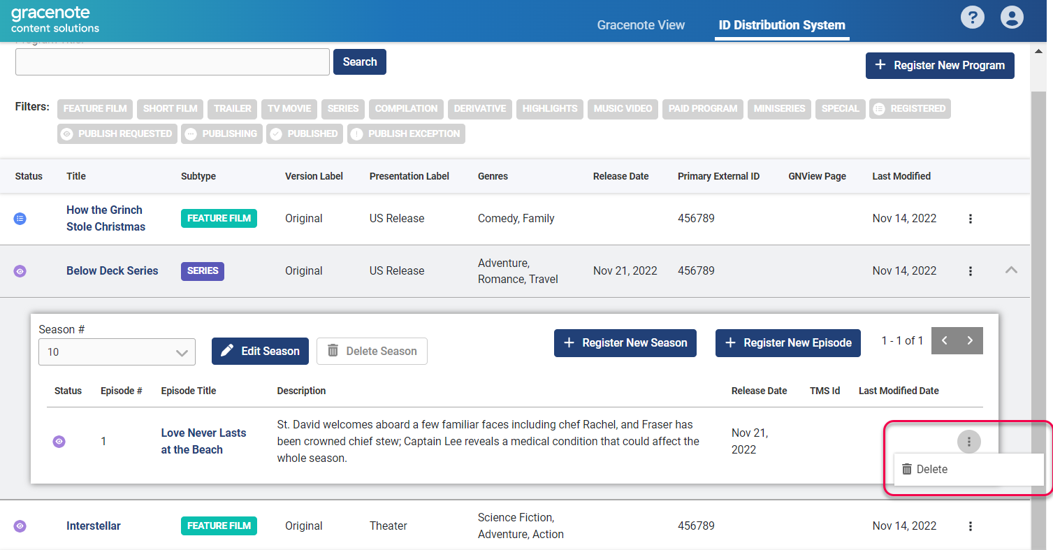 - Click on the dropdown icon located to the right of the program row to be deleted.