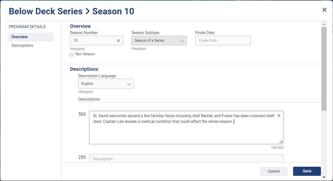 View and Edit a Season