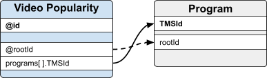 The following ERD illustrates the ID relationships from a Video Popularity record.